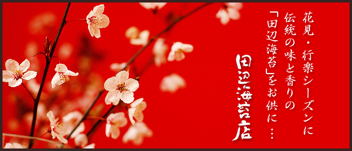 卒業・入学・入社・転勤…など、一年で一番人々の行き交いが活発になる今日この頃。 季節も新たな芽を息吹、花見・行楽シーズンへと人々も癒しの中へ。その全てのお供に伝統の味と香りの「田辺海苔店」の厳選された海苔はいかがでしょうか?